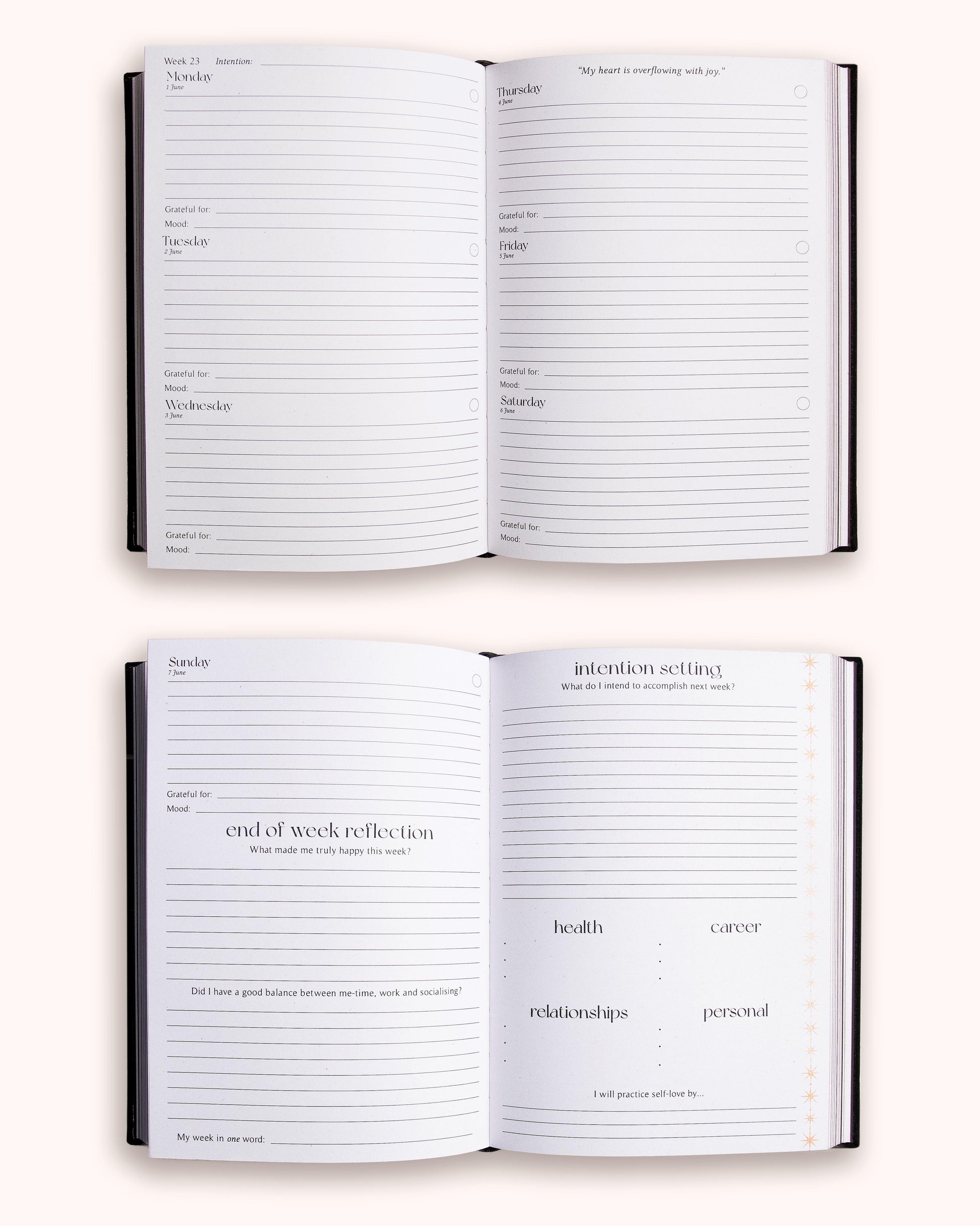 2026 Year of Growth Book - a diary with a focus on mindfulness, astrology, gratitude, intention setting, self reflection, creativity and personal growth.