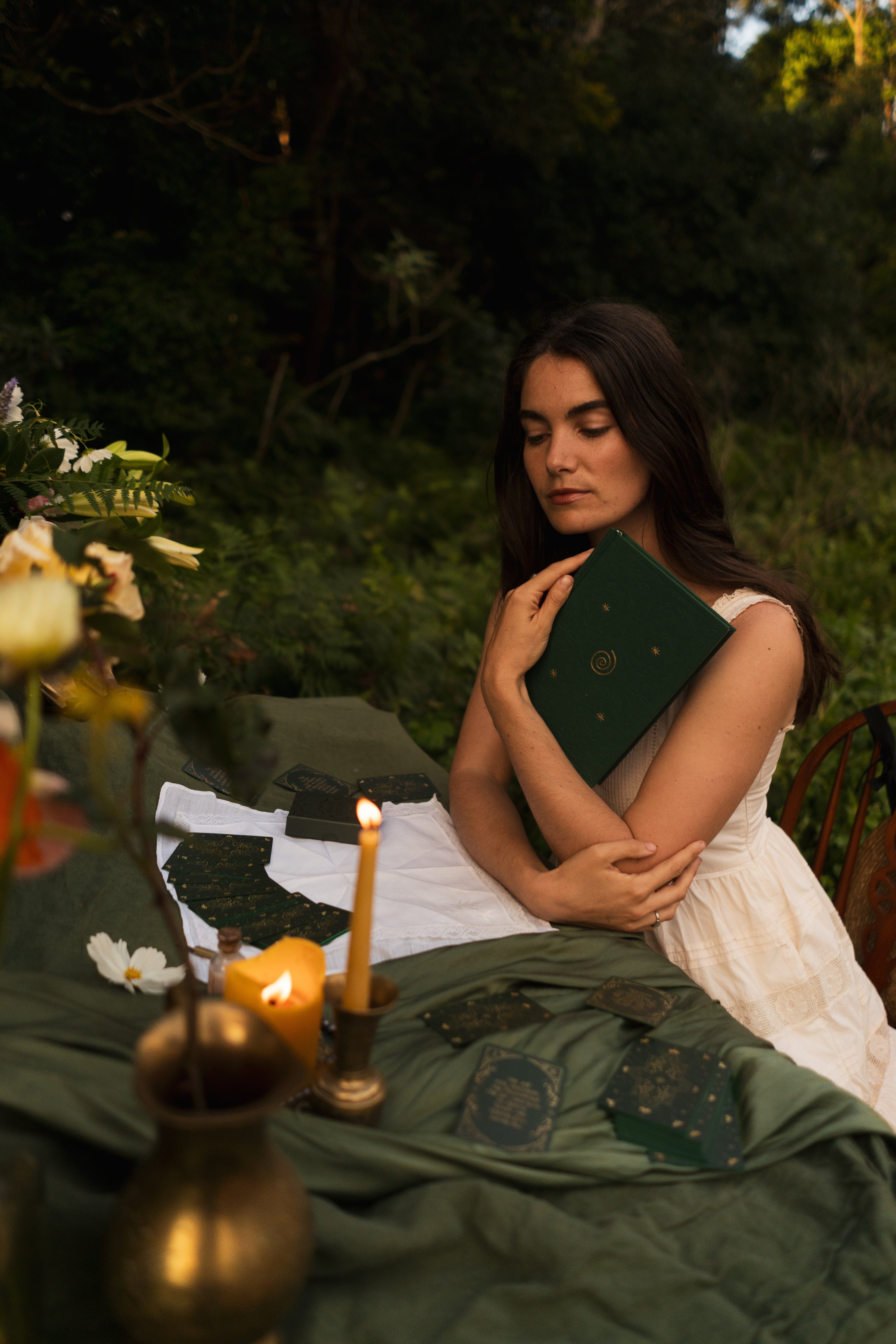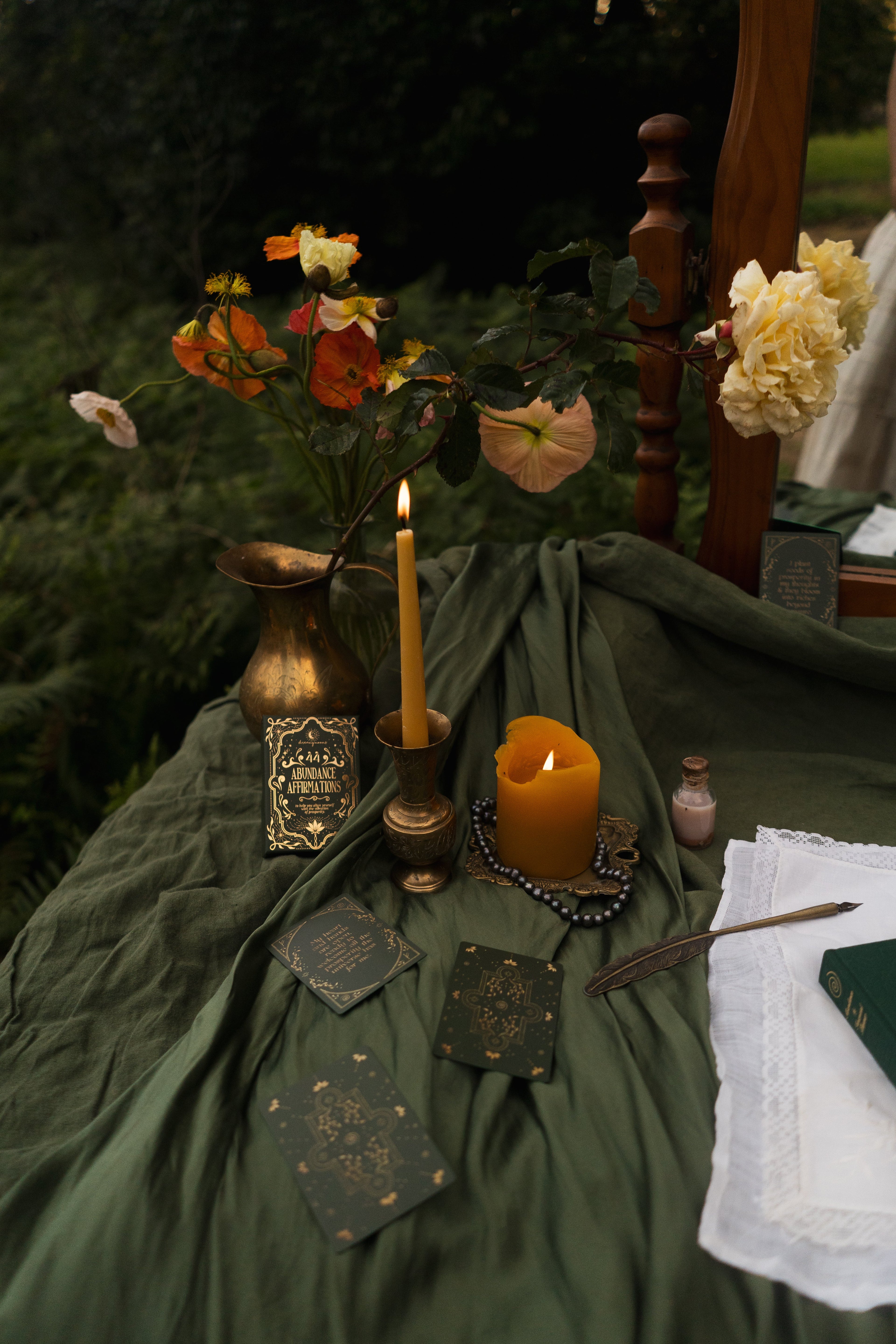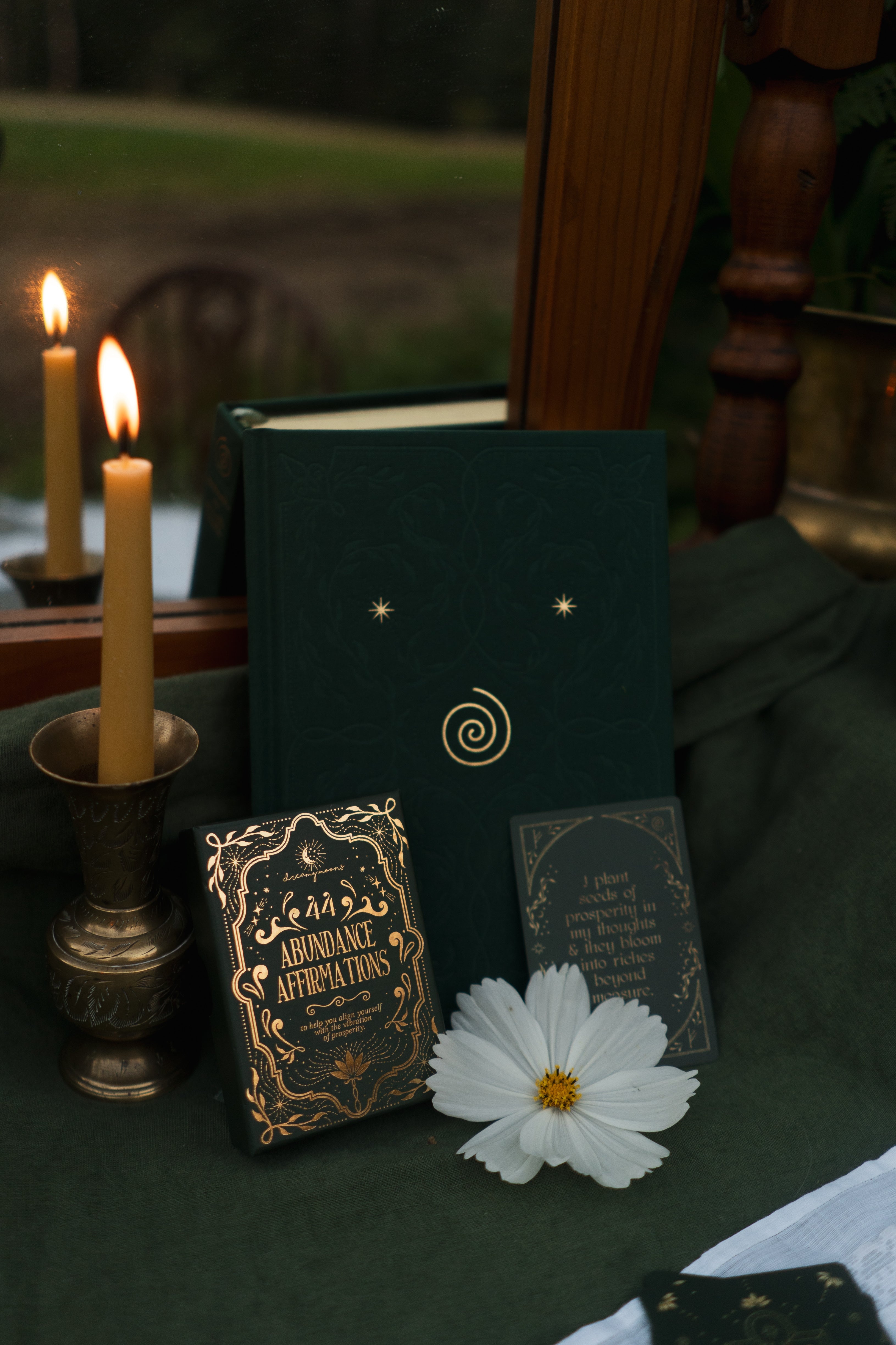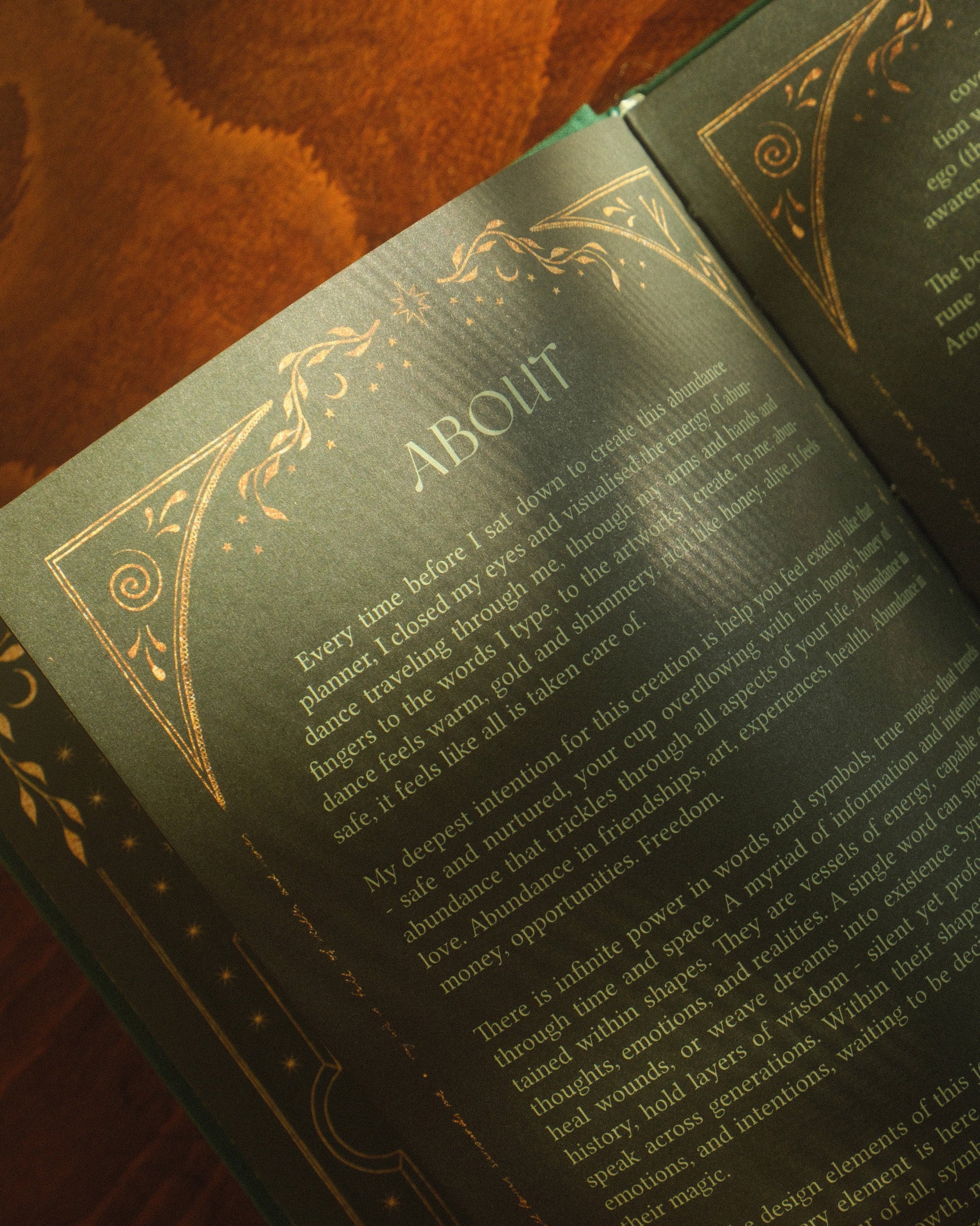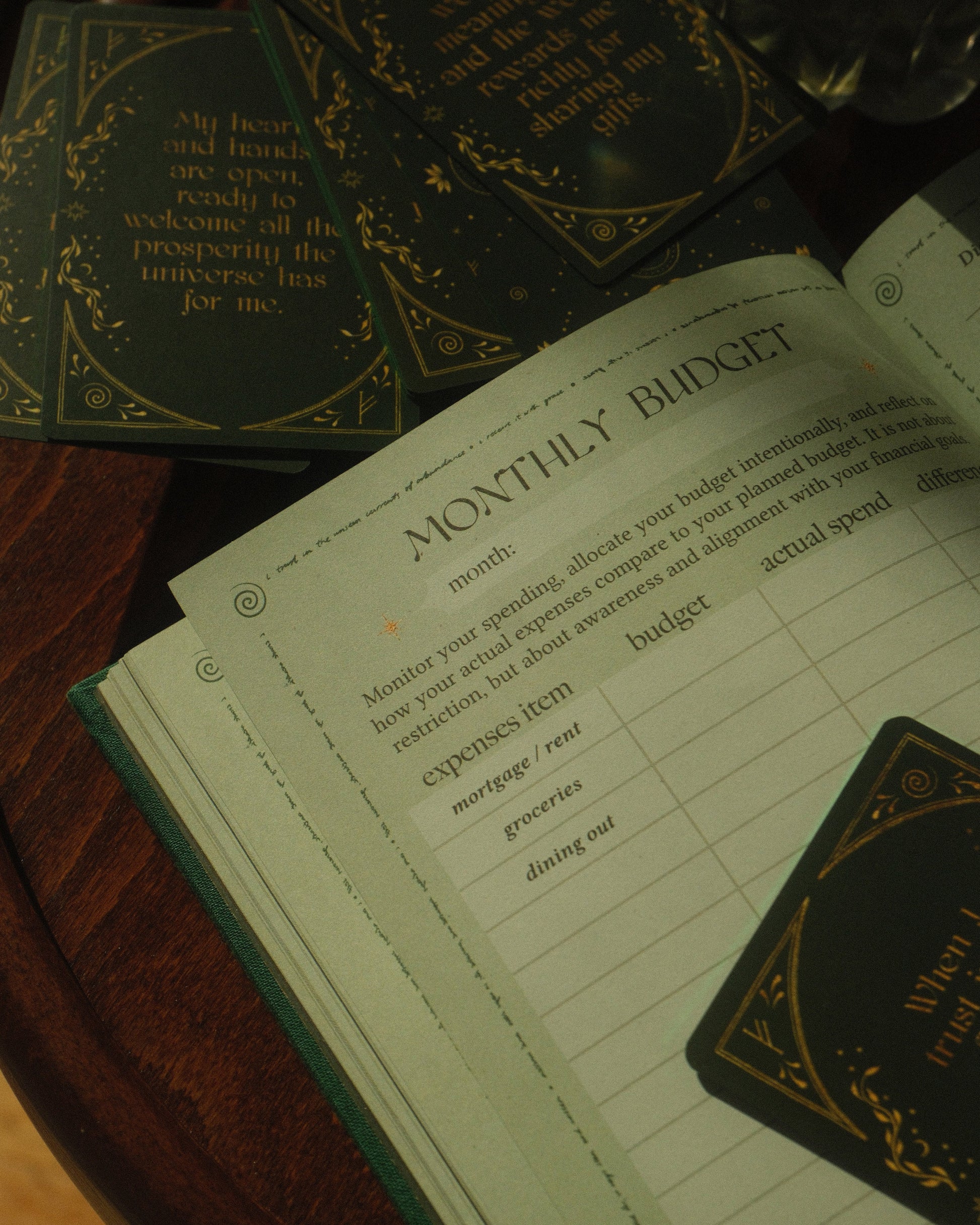 Lovingly designed to support you in cultivating wealth through intention and an abundance mindset. Inside, you'll gently explore limiting beliefs, reflect on your relationship with money, and expand into new income possibilities aligned with your unique gifts. Every detail created with intention - from the emerald green cloth cover to the golden spiral and sacred runes as border elements.