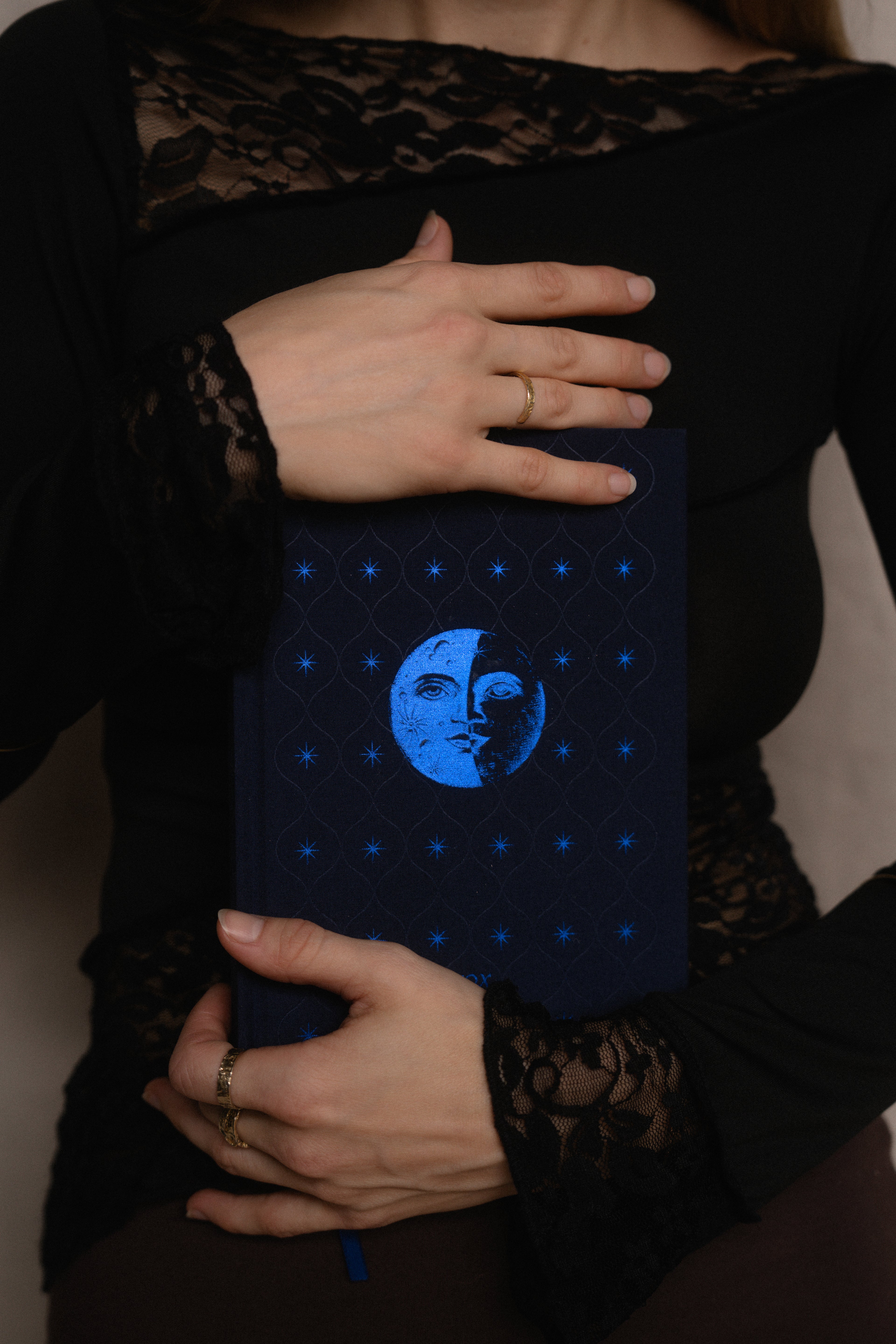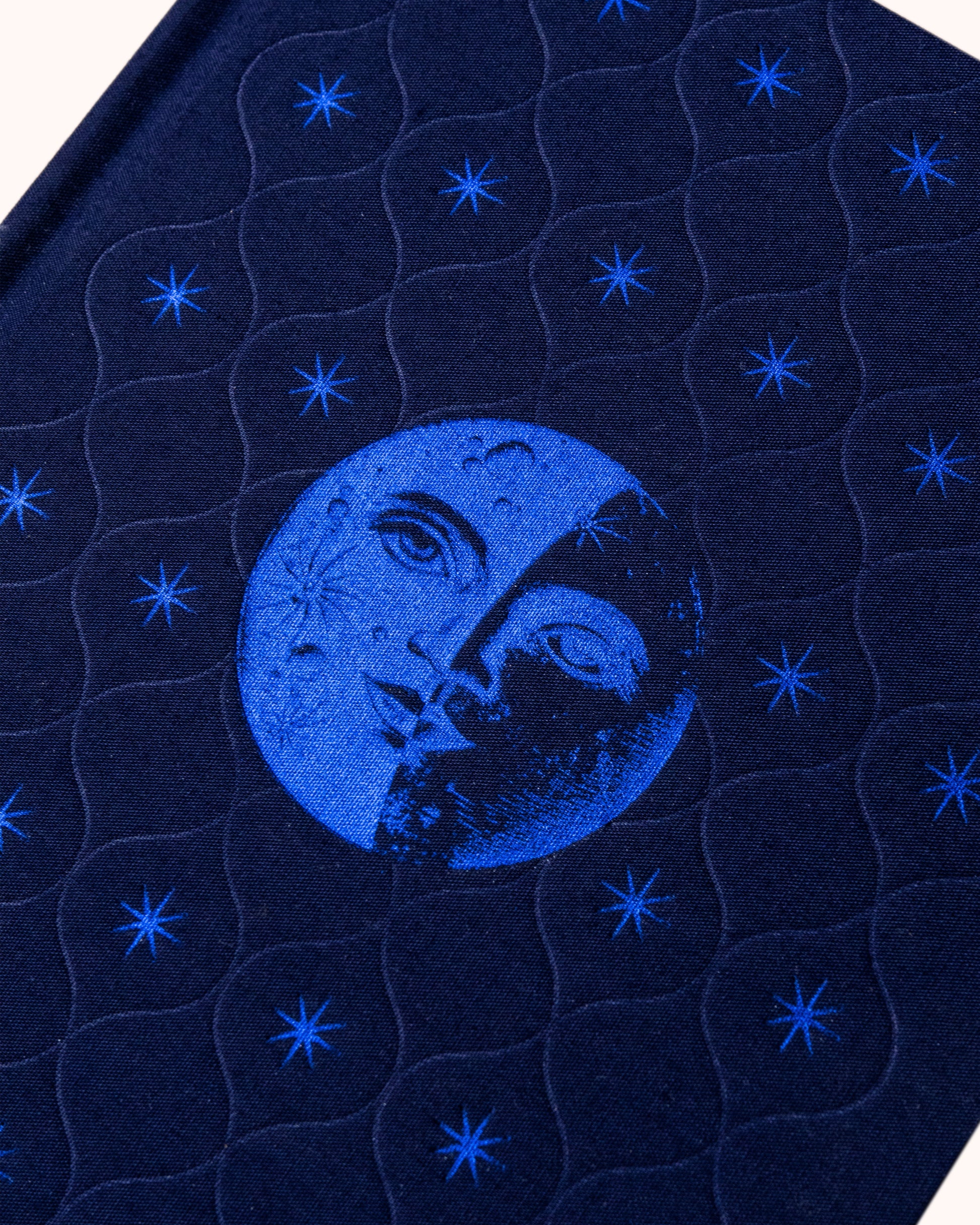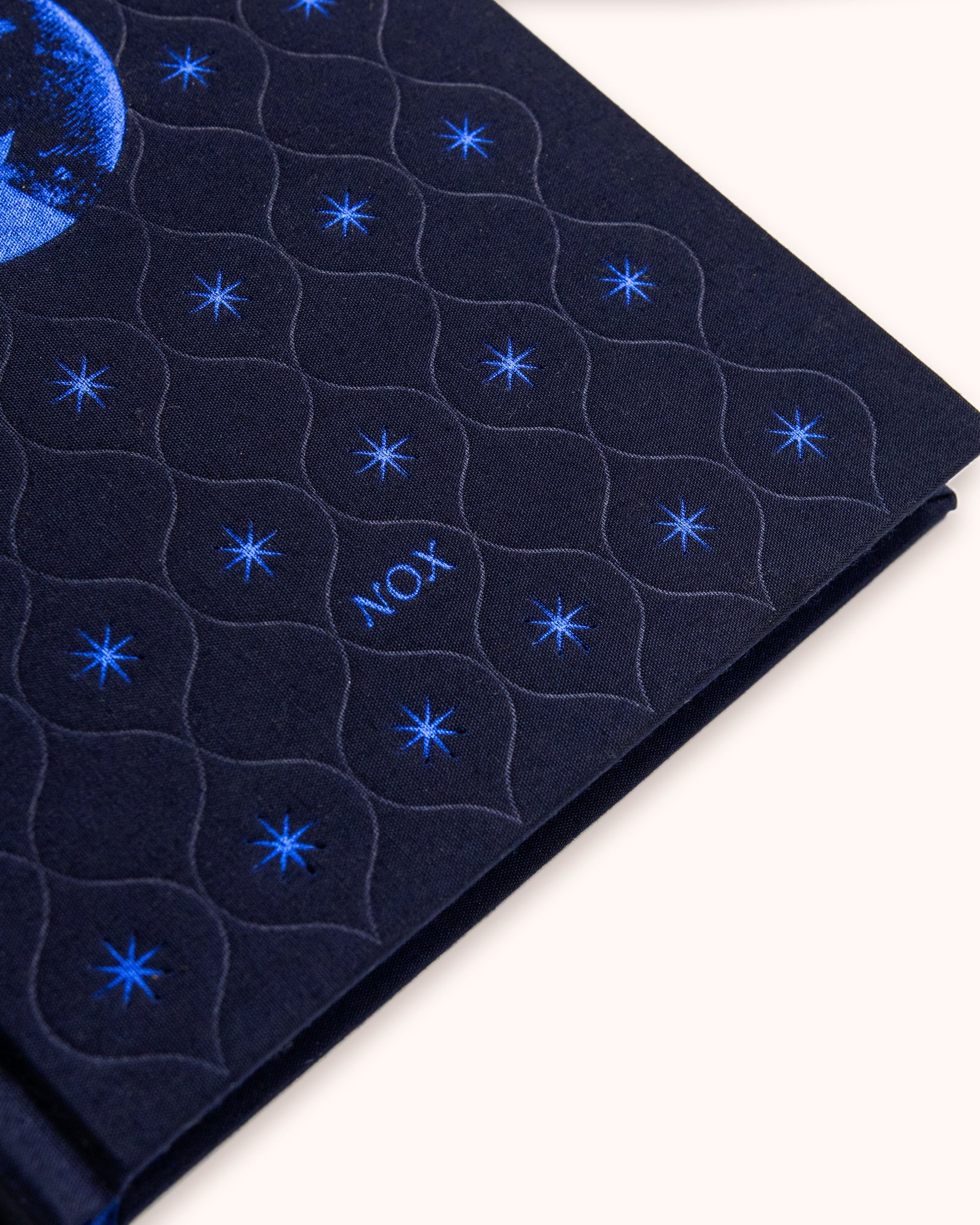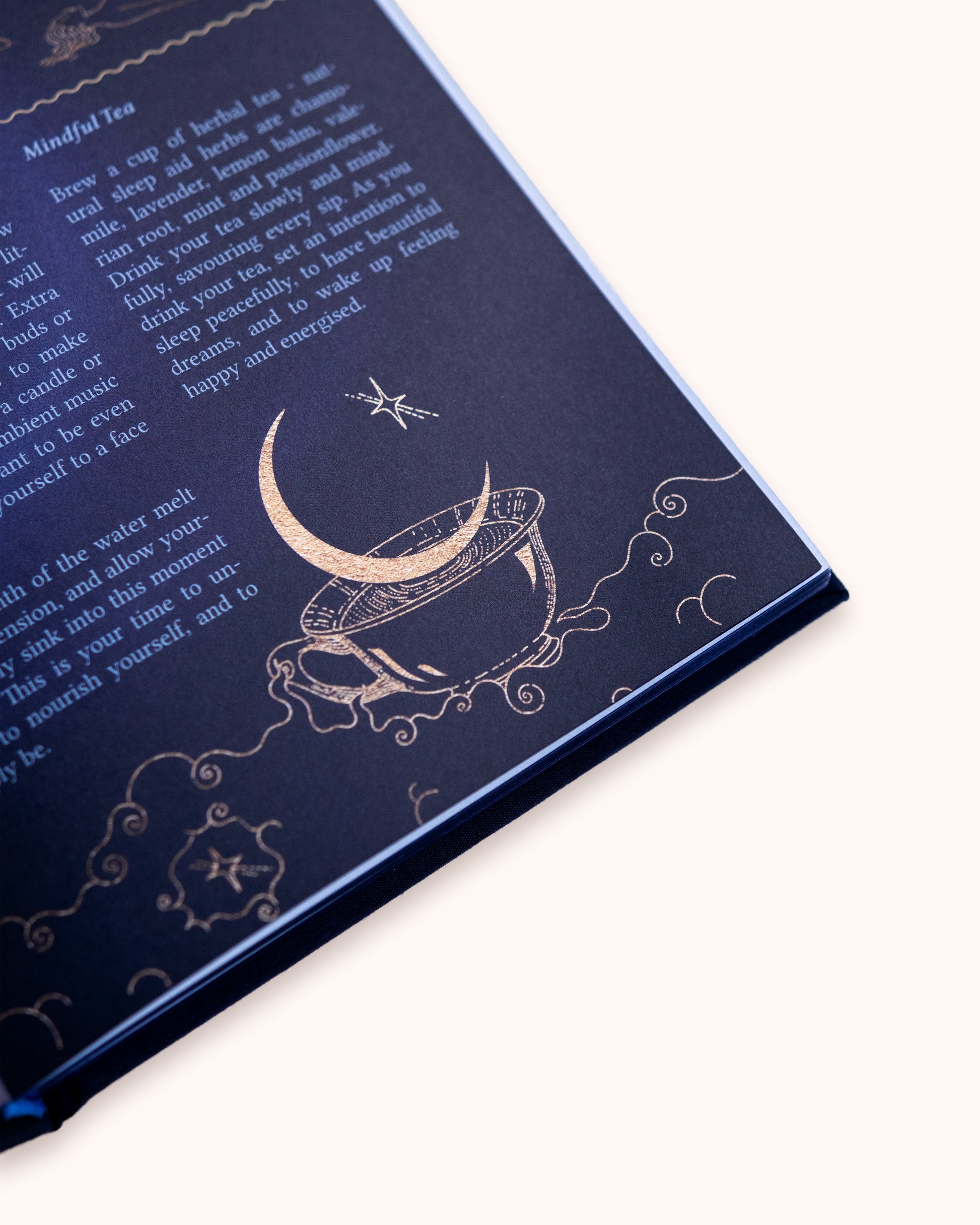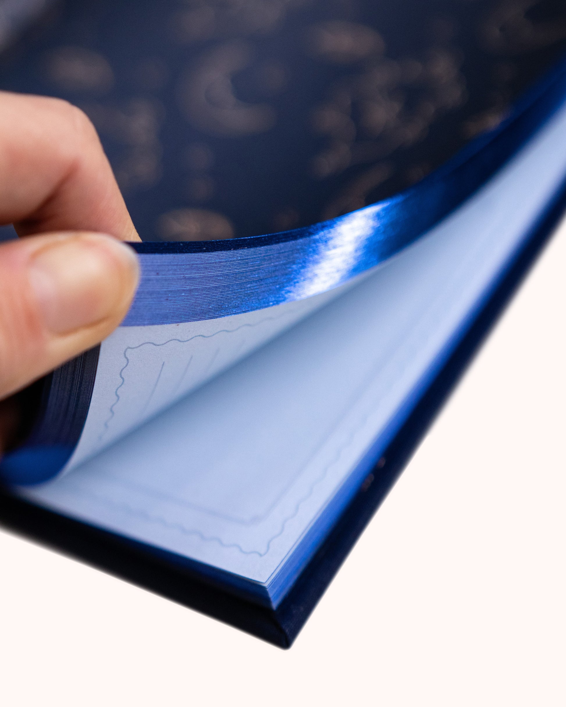 Adorned in indigo blue foil...